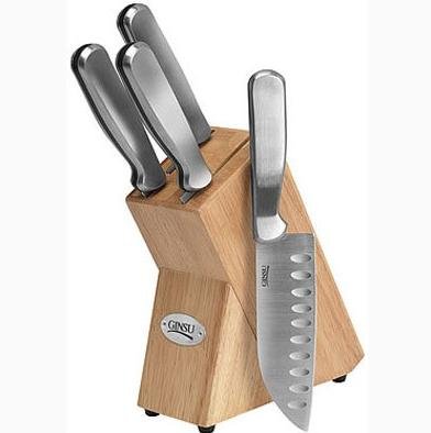 Ginsu Kotta Series 5 Piece Prep Set.Stainless construction for strength, balance and style High carbon, stain resistant, Japanese stainless steel blade for a longer lasting edge.Compact design saves valuable counter space.Limited Lifetime Warranty.Set Includes 3.5" Paring Knife, 4.5" Utility Knife, 5" Santoku Knife, 6" Chef's Knife, Hardwood Storage Block. Read more...