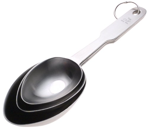 These professional-looking, heavy-gauge 18/8 stainless-steel muffin measurers should do double duty in your kitchen. Use the three cups to make precise measurements of batter for mini, medium, or mega muffin tins, or use in everyday cooking to measure dry ingredients. The three-piece set includes 1/8-cup (30 ml), 1/4-cup (60 ml) and 1/2-cup (118 ml) measures, each with a long handle--great when you're scraping the bottom of the flour canister. They come with a connector ring that is much easier to undo than most, will look pretty hanging on your kitchen tool bar, and are dishwasher-safe. --Doree Armstrong