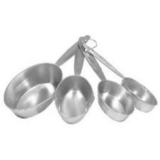 Ekco 123, 4 Piece, Stainless Steel, Measuring Cup Set, Set Includes: 1/4, 1/3, 1/2 & 1 Cup, Flat Bottoms Provide Stability & Prevent Spills, Pour Spouts Eliminate Spilling, Unique Oval Shape, Cups Nest Closely Together For Easy Storage. Read more...