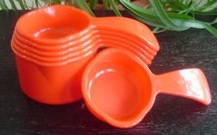 PRETTY RED MEASURING CUPS. A MUST FOR BAKING. SET OF 6 INCLUDES 1/4, 1/3, 1/2, 2/3, 3/4 & 1 CUP. THEY ARE DISHWASHER SAFE. THEY SIT FLAT ON COUNTER FOR ACCURATE MEASURING. EASY TO USE HANDLES. THEY NEST FOR SAVING STORAGE. TUPPERWARE QUALITY & DURABILITY. GREAT GIFT!!! Read more...